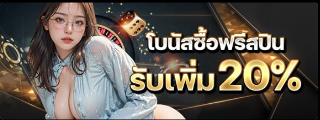ตัวอย่างเช่น :ซื้อฟรีสปิน1000บาทได้รับโบนัสทั้งหมด2000บาท=2000-1000(หักต้นทุนกดซื้อฟรีสปิน)รับโบนัสเพิ่ม20%=1000X20%ดังนั้นโบนัสที่จะได้รับเพิ่มคือ200บาทโบนัสสูงสุด1000บาท
